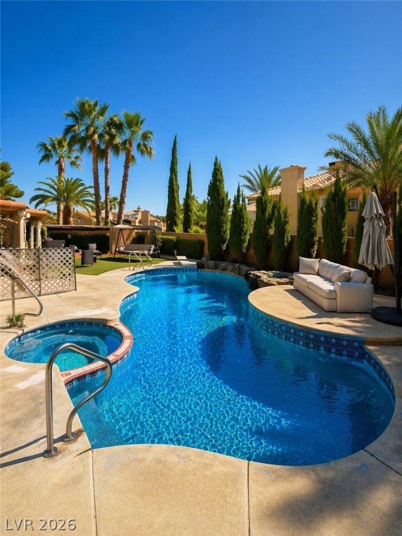 Beautiful single-story home located in the heart of Henderson! This well-maintained property features 4 bedrooms and 2 full bathrooms, offering a functional and comfortable layout. Enjoy an inviting living space with abundant natural light, complemented by a bright kitchen and dining area perfect for everyday living and entertaining. The primary bedroom is thoughtfully designed and can be easily adapted into a private guest suite, offering added flexibility for extended family or rental potential. Step outside to your private backyard oasis featuring a sparkling pool and relaxing spa?ideal for enjoying Nevada's sunny weather. The covered patio provides the perfect space for outdoor gatherings, dining, or simply unwinding. Conveniently located near shopping, dining, parks, and top-rated schools, this home combines comfort, convenience, and lifestyle. Don't miss this great opportunity!