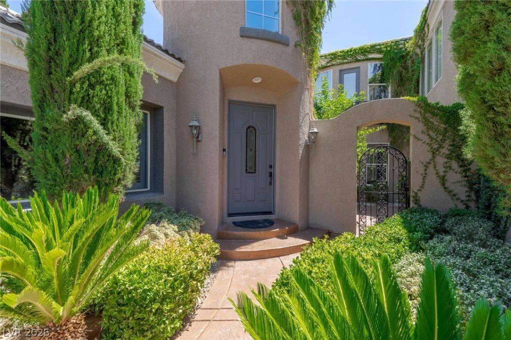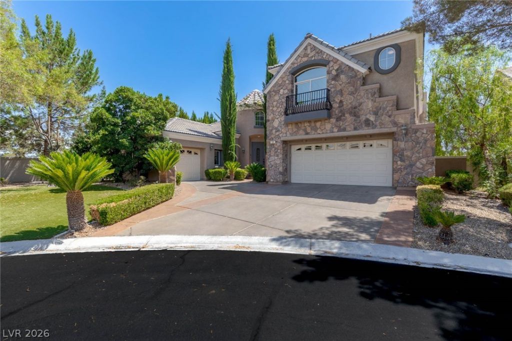 Guard-gated 2-story w/pool & spa. Built on a cul-de-sac lot in Queensridge. Traditional floor plan w/formal living/dining spaces, natural stone finishes, & engineered hardwood & travertine flooring. Courtyard. Kitchen w/generous island, breakfast bar, & high-end appliances by LG & GE Monogram. Great room w/double-height ceilings & built-in entertainment center. In the rear yard, you can host a barbecue at the outdoor kitchen, lounge on the covered patio, & enjoy the pool & spa. Upper-level owner's suite w/balcony, modern gas fireplace, skylit Jacuzzi tub, double shower, & dual vanities, water closets, & walk-in closets. Den w/floor-to-ceiling mirrors on one wall would make an ideal fitness room, dance studio, or office space. Residents of Queensridge enjoy 24-hour guard-gated security & a serene environment w/tree-lined streets, greenbelts, small parks, & gardens. Exceptional shopping, dining, & entertainment minutes away at Tivoli Village, Boca Park, & Downtown Summerlin.